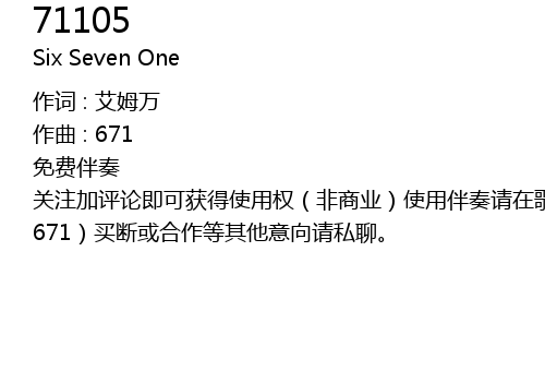 | 免费伴奏 关注加评论即可获得使用权(非商业)使用伴奏请在歌名后标注(prod.by 671)买断或合作等其他意向请私聊。 |