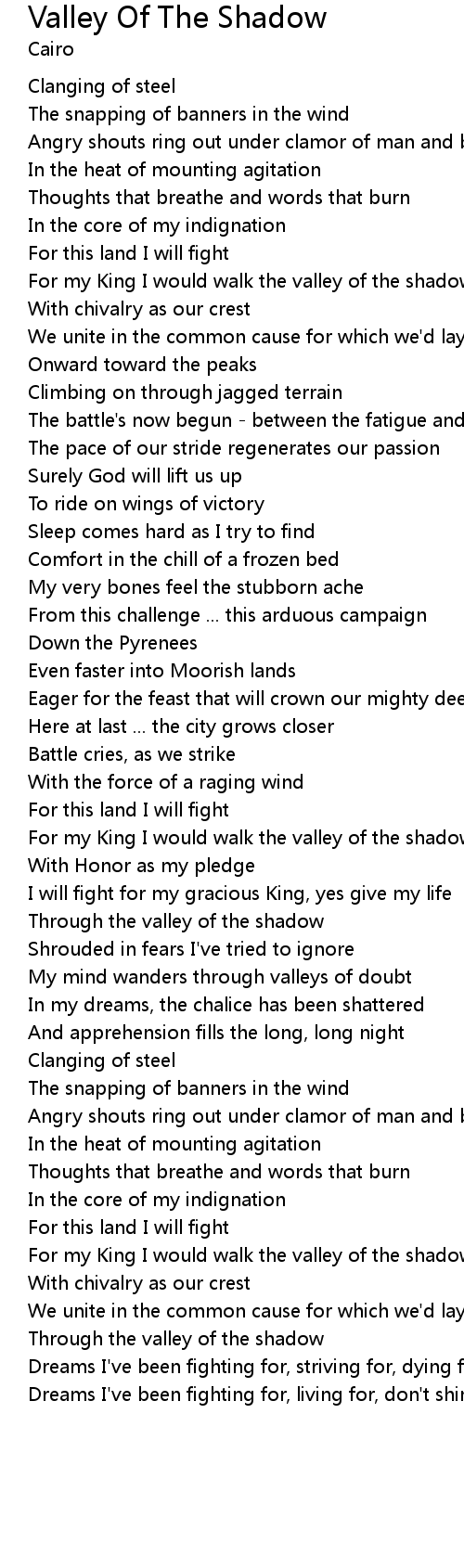 For my King I would walk the valley of the shadow |