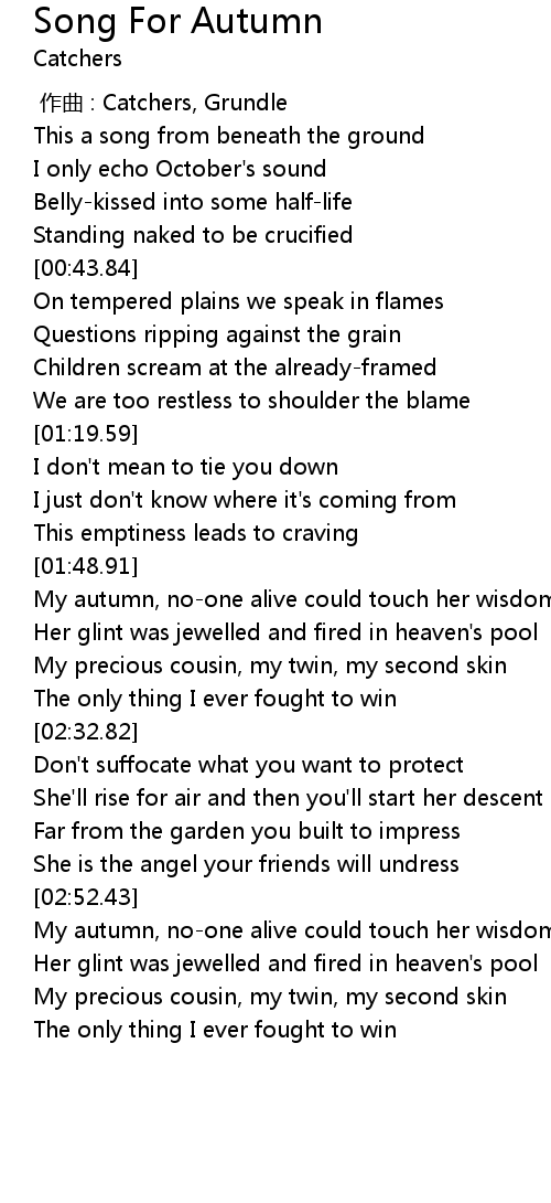 | [02:02.41] | My autumn, no-one alive could touch her wisdom |