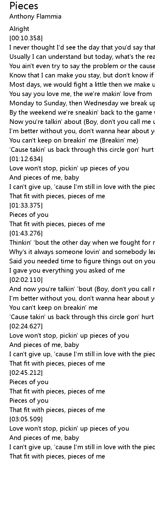 I can't give up, 'cause I'm still in love with the pieces of you |
