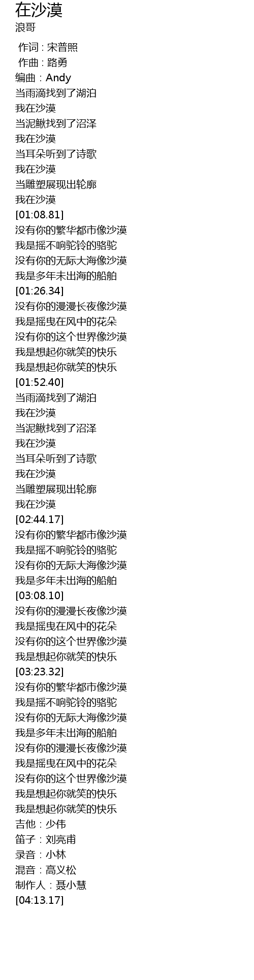 | [03:30.92] | 我是摇不响驼铃的骆驼 |