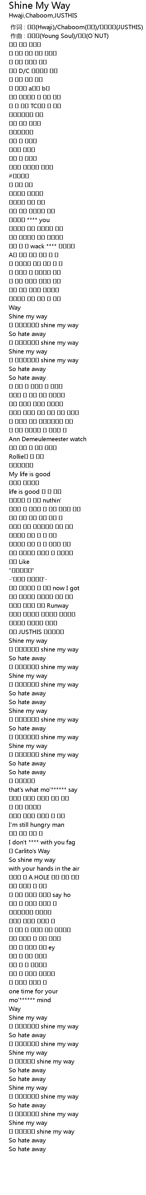 | [02:34.452] | 개 썅마이웨이로 shine my way |