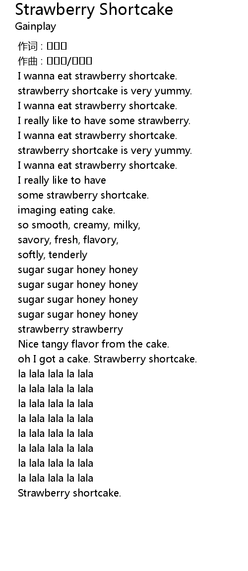 | [00:23.327] | strawberry shortcake is very yummy. |