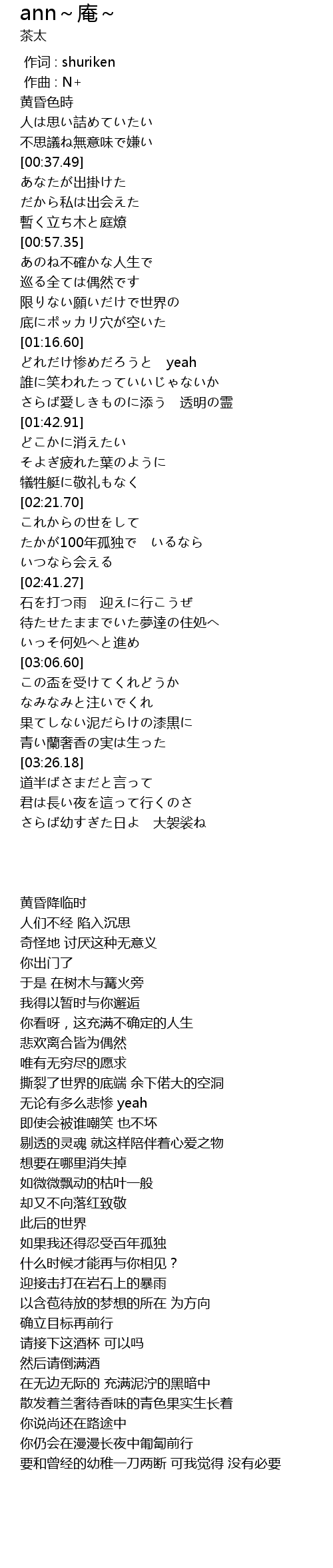 | [00:00.000] | 作词 : shuriken |