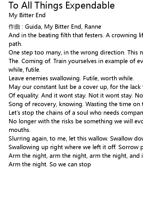 | 歌曲 | To All Things Expendable |
