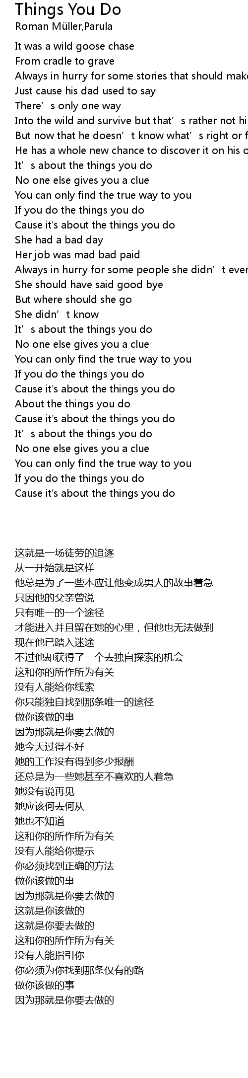 | 歌曲 | Things You Do |