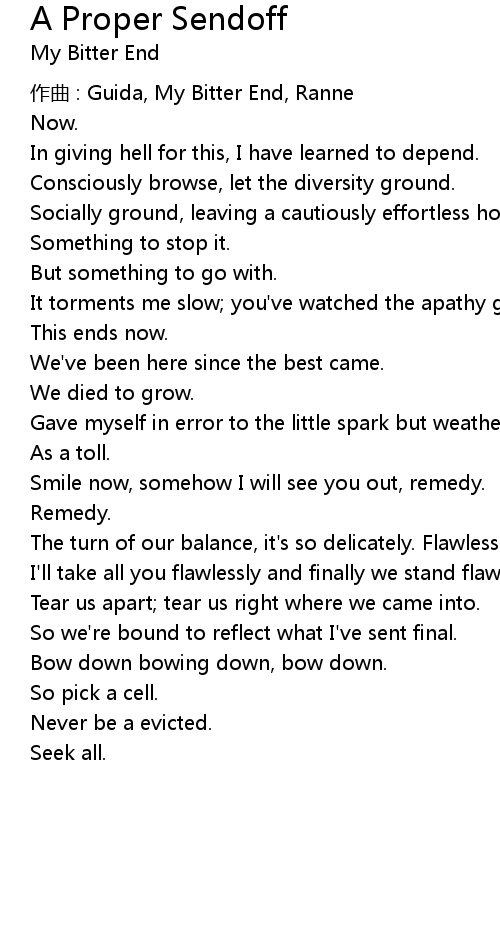 | zuò qǔ : Guida, My Bitter End, Ranne | |