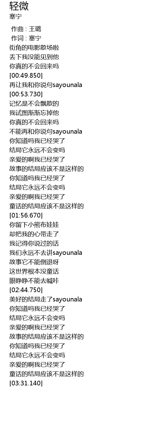 | [00:50.550] | 再让我和你说句sayounala |
