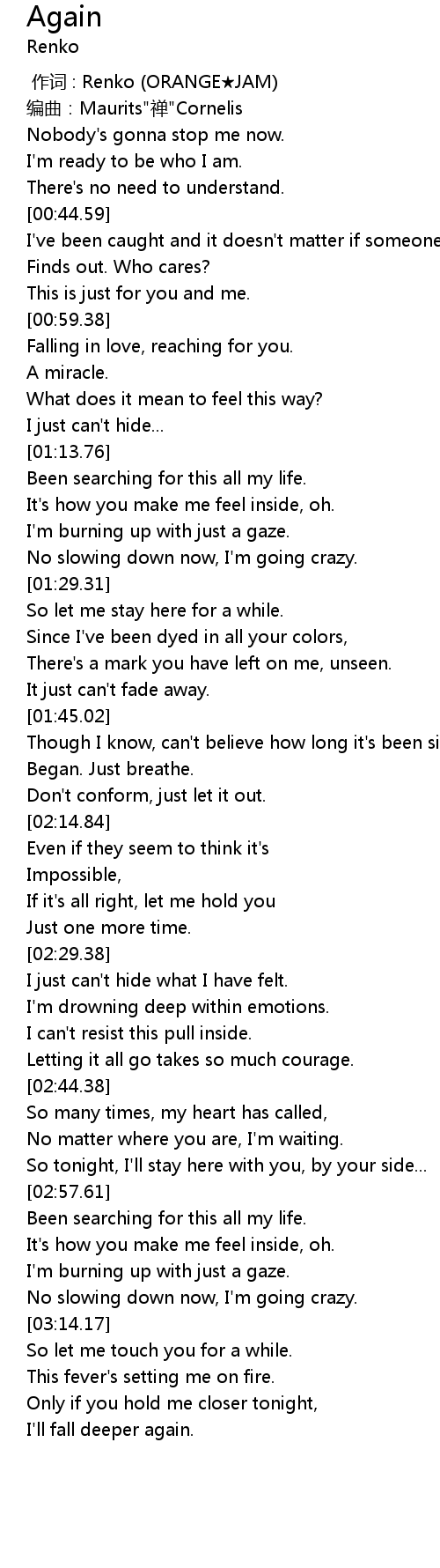 | [03:14.53] | So let me touch you for a while. |