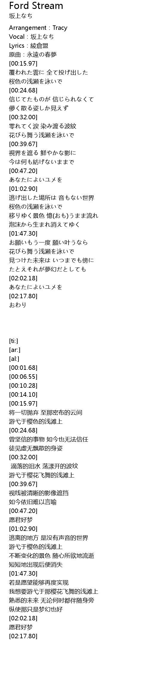 | [00:14.10] | 原曲:永遠の春夢 |