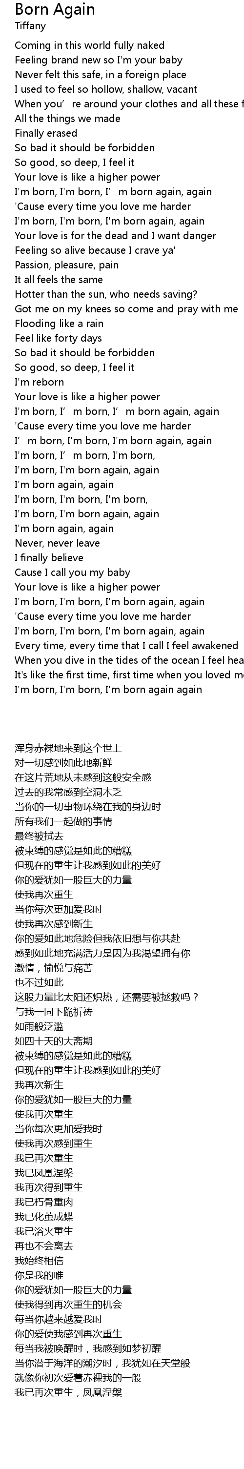 | [00:40.28] | I'm born, I'm born, I’m born again, again |
