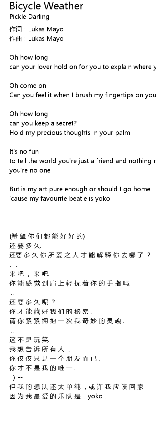 | 歌曲 | Bicycle Weather |