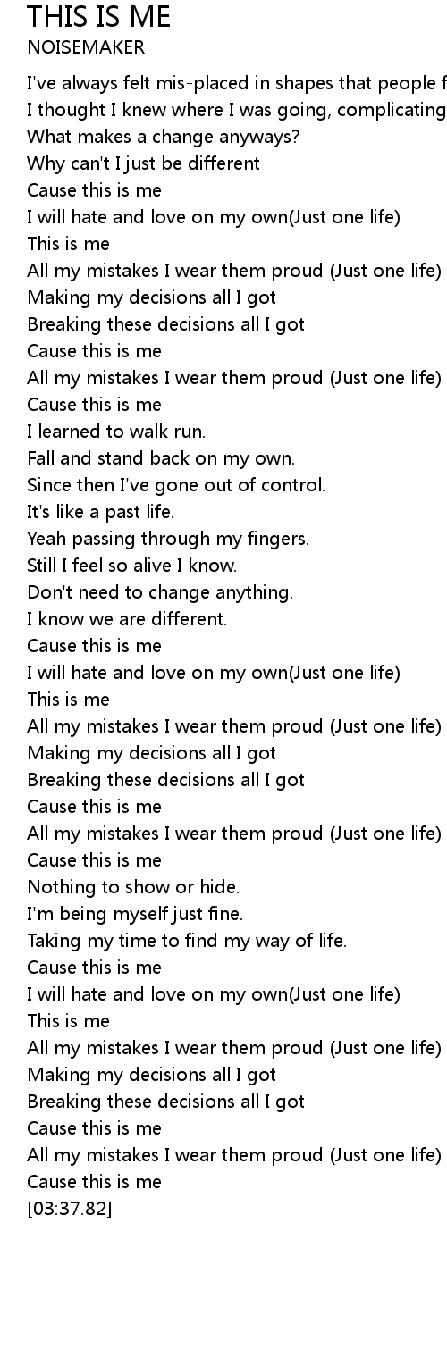| [01:07.46] | Cause this is me |