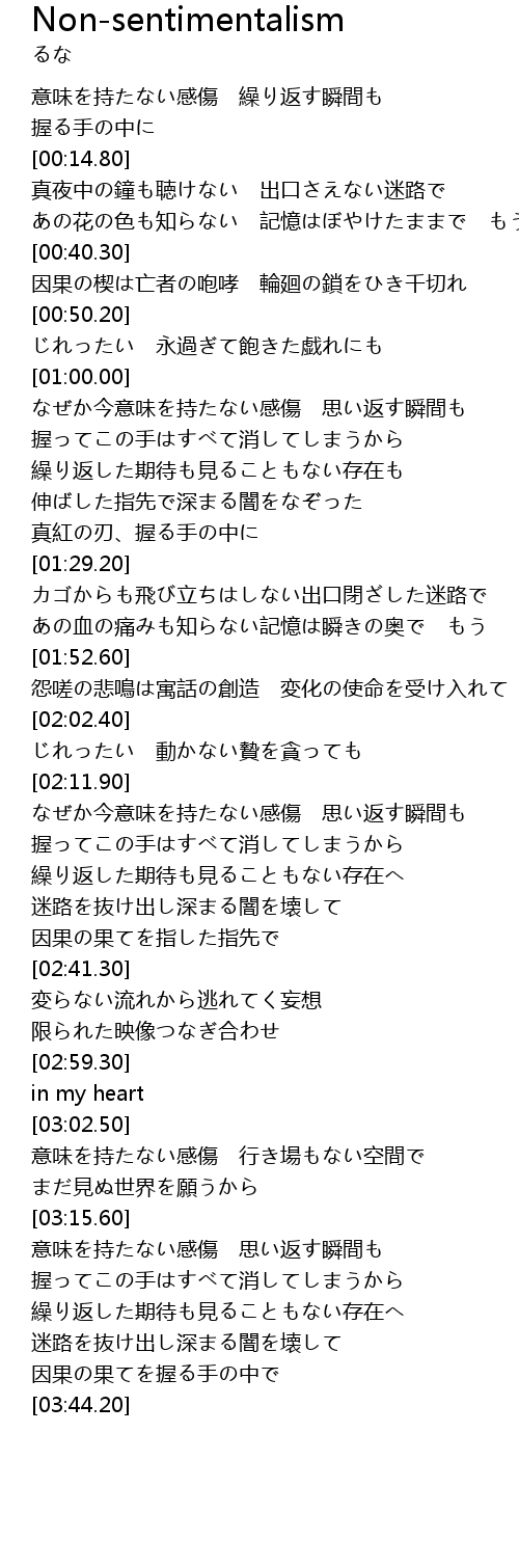 | 歌曲 | Non-sentimentalism |