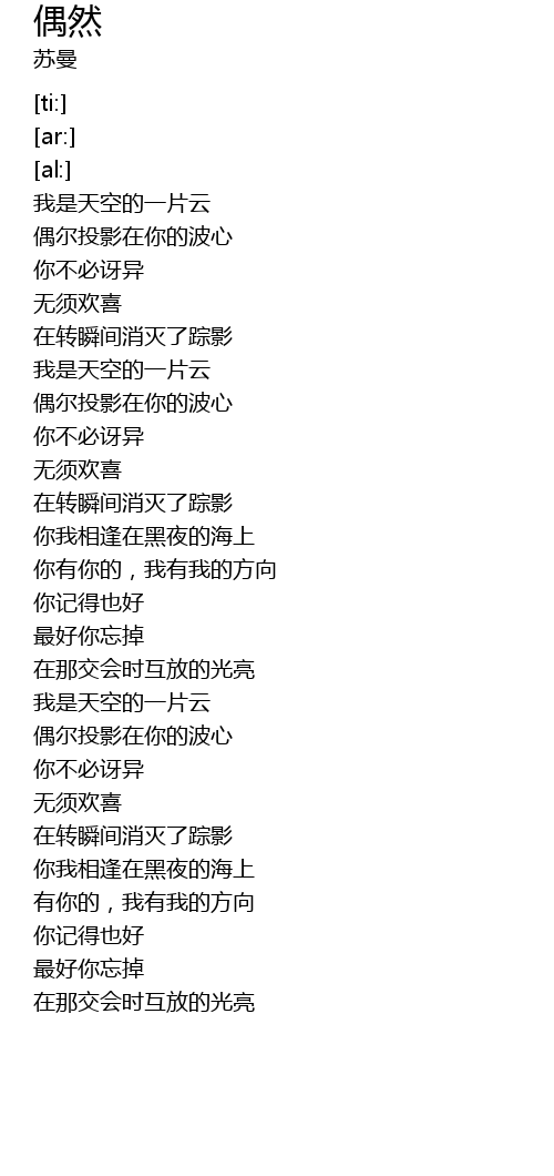 | [00:37.38] | 我是天空的一片云 |