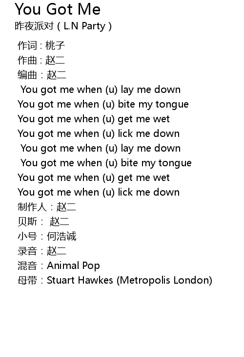 | 歌曲 | You Got Me |