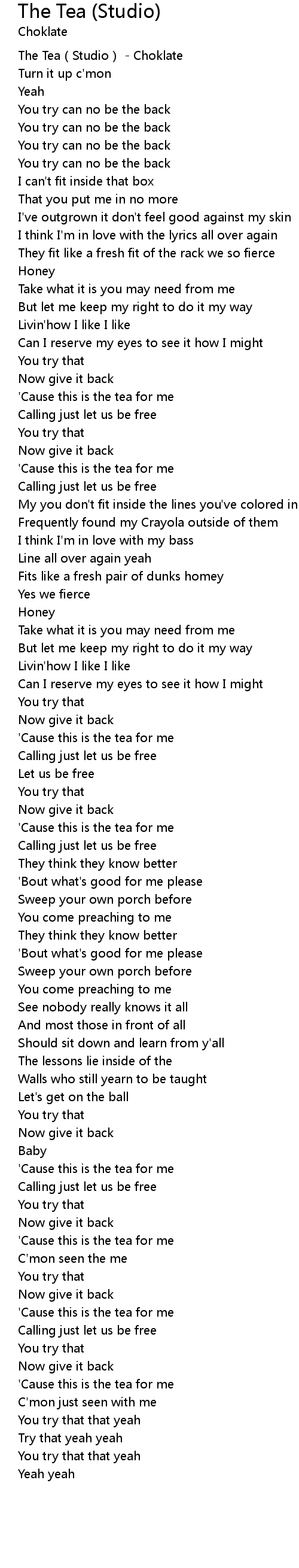 | [00:00.100] | The Tea(Studio) - Choklate |