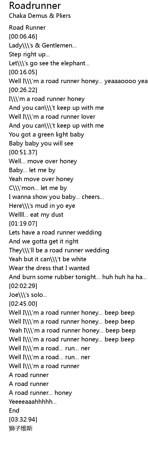 | [00:02.32] | Road Runner |