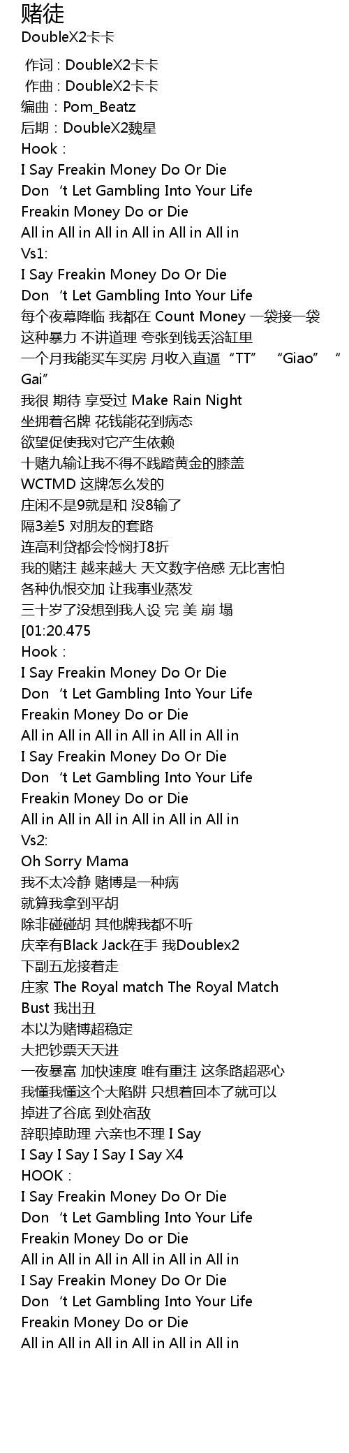 | [01:49.708] | 我不太冷静 赌博是一种病 |