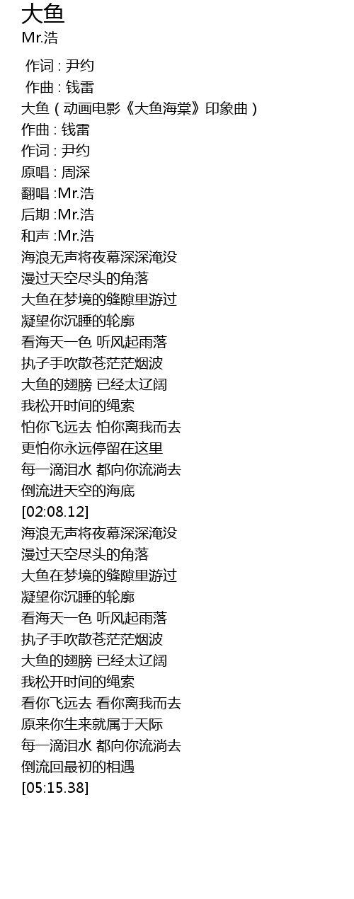 | [01:26.01] | 大鱼的翅膀 已经太辽阔 |