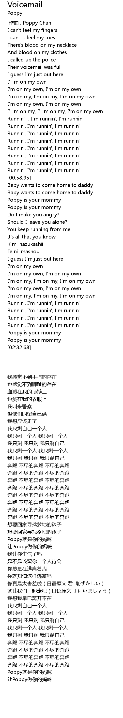 | [02:29.43] | 让Poppy做你的妈咪 |
