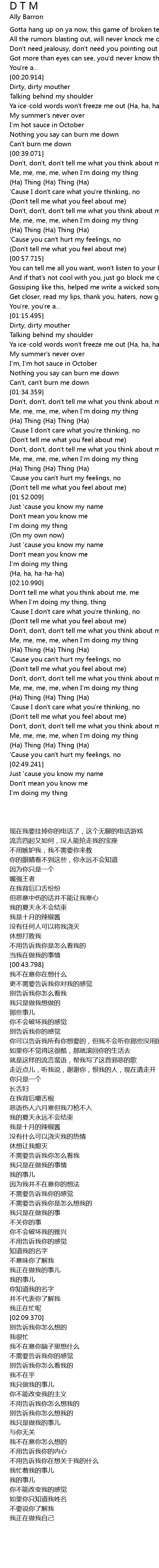 | [02:20.447] | Don' t, don' t, don' t tell me what you think about me |