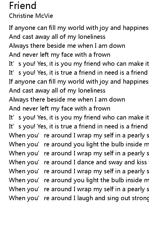 | It' s you! Yes, it is true a friend in need is a friend indeed | |
