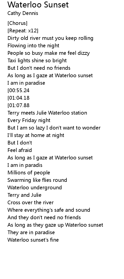 As long as they gaze up Waterloo sunset |