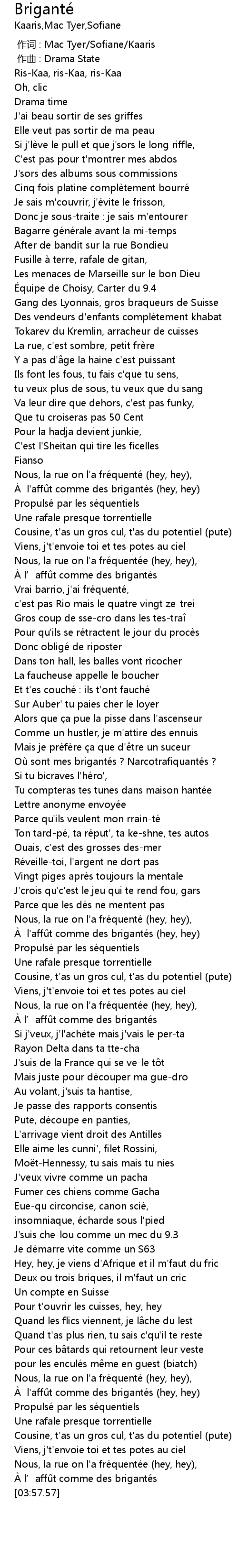| [00:00.000] | 作词 : Mac Tyer/Sofiane/Kaaris |