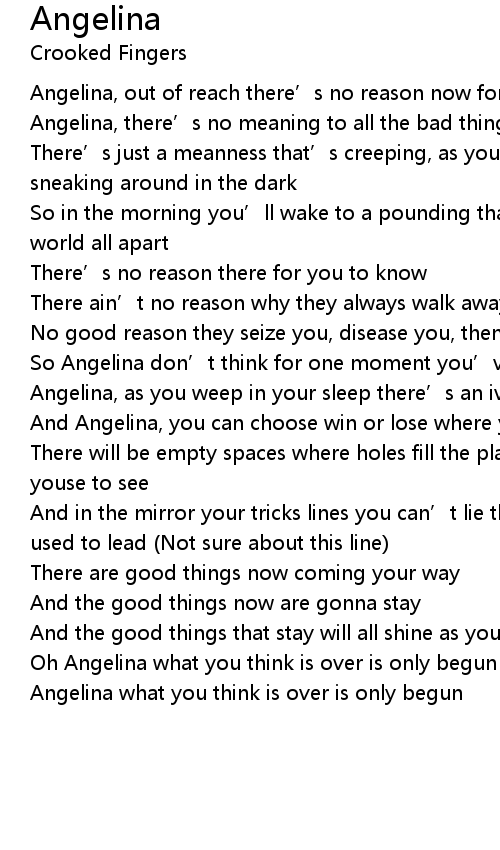 | Oh Angelina what you think is over is only begun | |
