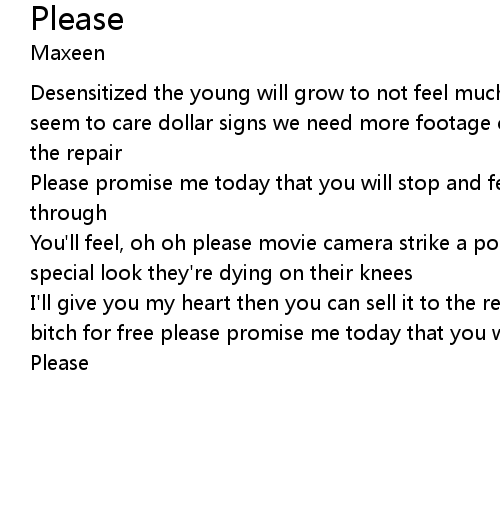 | I'll give you my heart then you can sell it to the revolution and ride that bitch for free please promise me today that you will stop and feel, oh oh | |