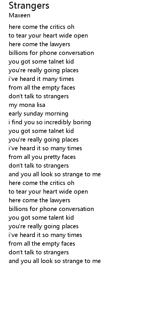 | don't talk to strangers | |