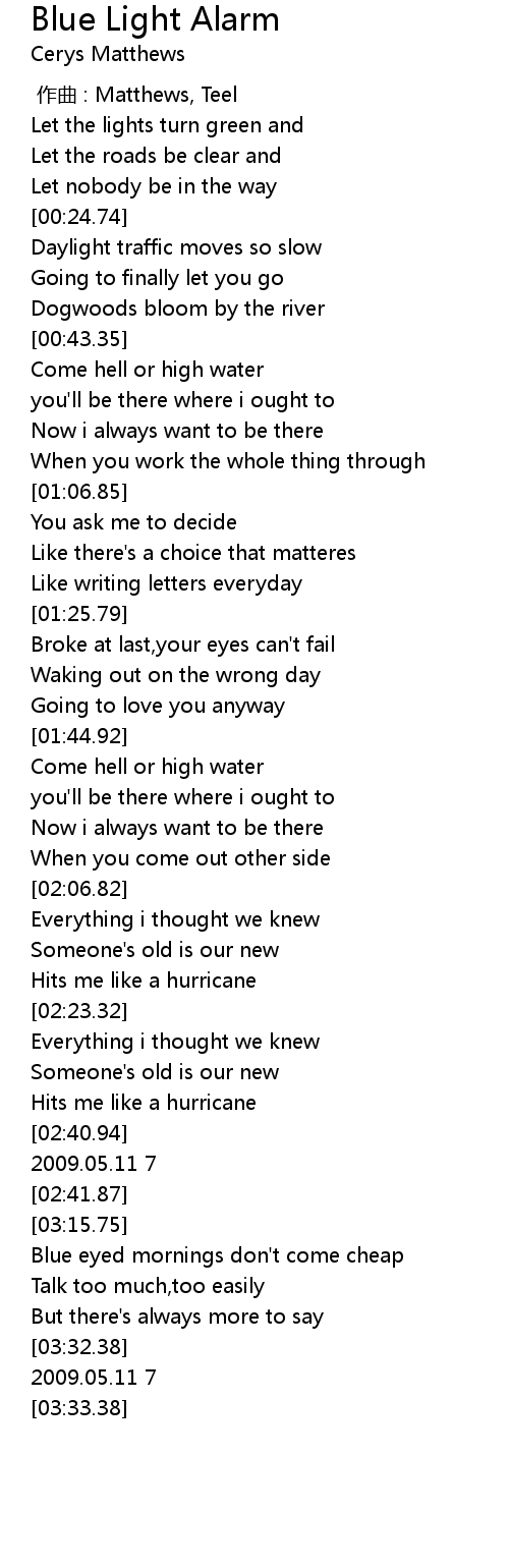 | [03:16.75] | Blue eyed mornings don't come cheap |