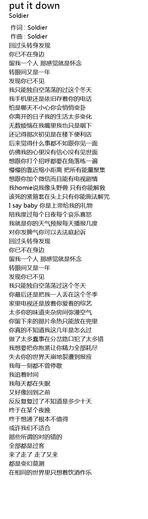 | [00:00.000] | 作词 : Soldier |