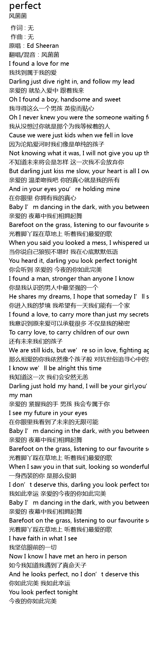 | [01:41.080] | You heard it, darling you look perfect tonight |