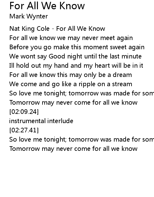 For All We Know 歌词