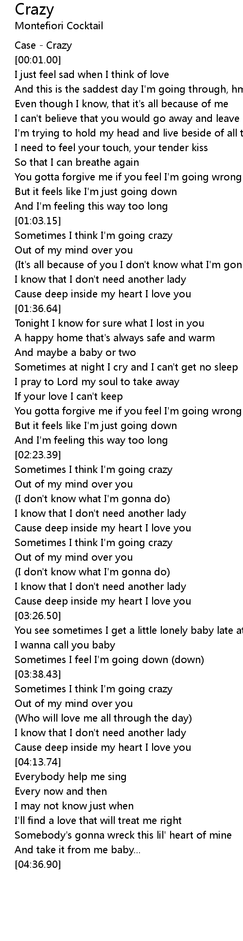 Sometimes I think I'm going crazy |