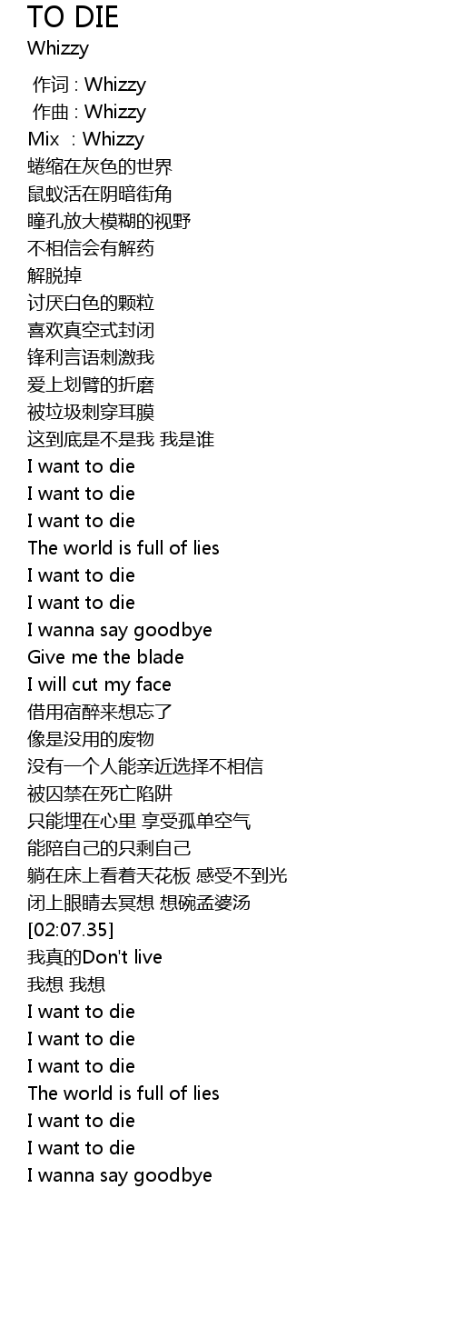 | [02:07.62] | wǒ zhēn de Don' t live |