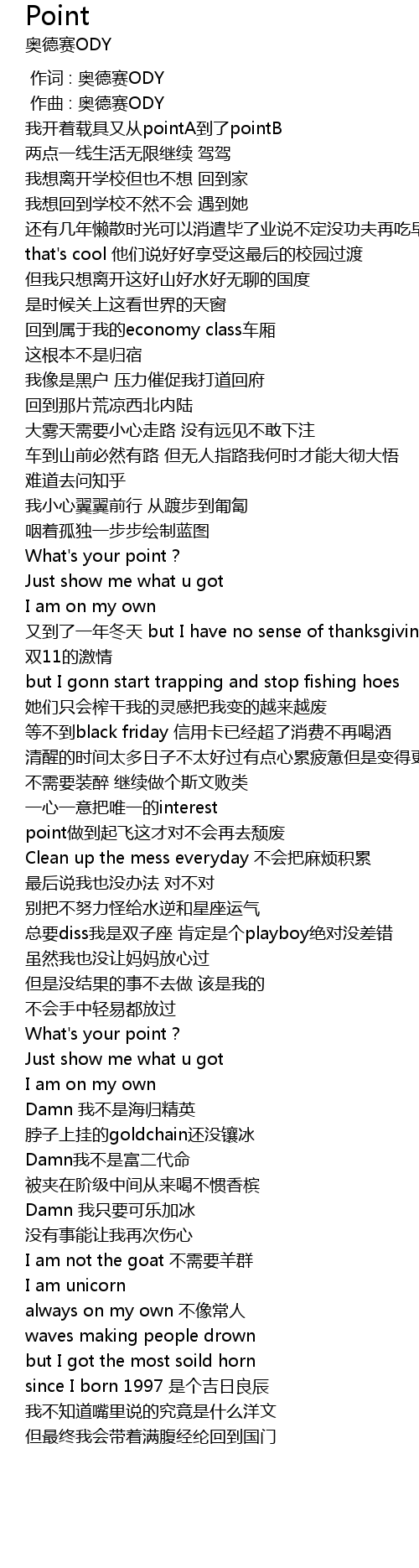 | [00:01.000] | zuò qǔ : ào dé sài ODY |