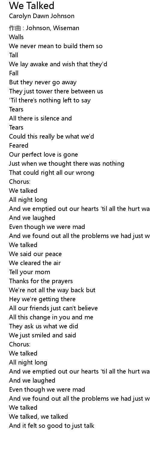 | And we emptied out our hearts ' til all the hurt was gone | |
