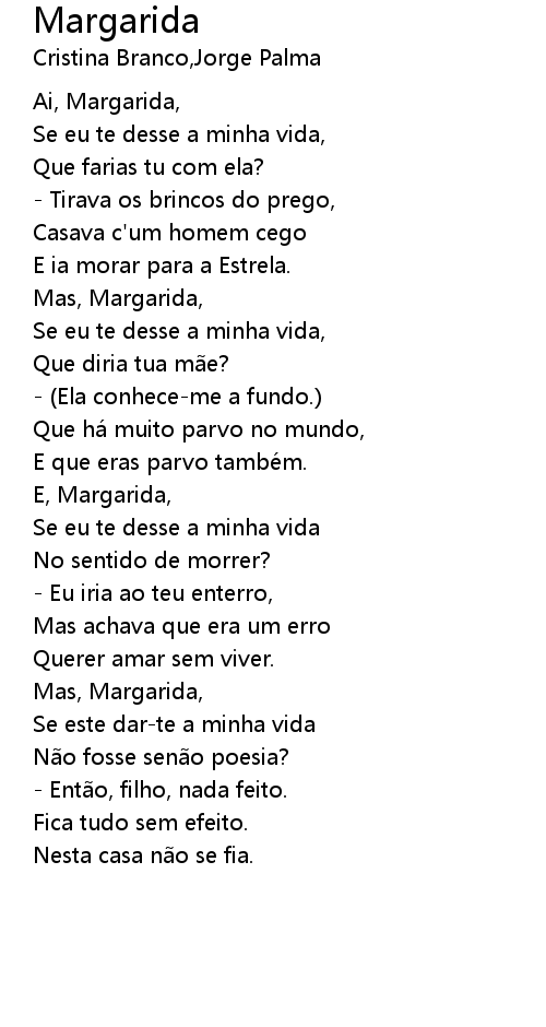 | Ai, Margarida, | |