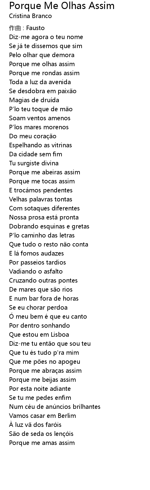 | 歌曲 | Porque Me Olhas Assim |