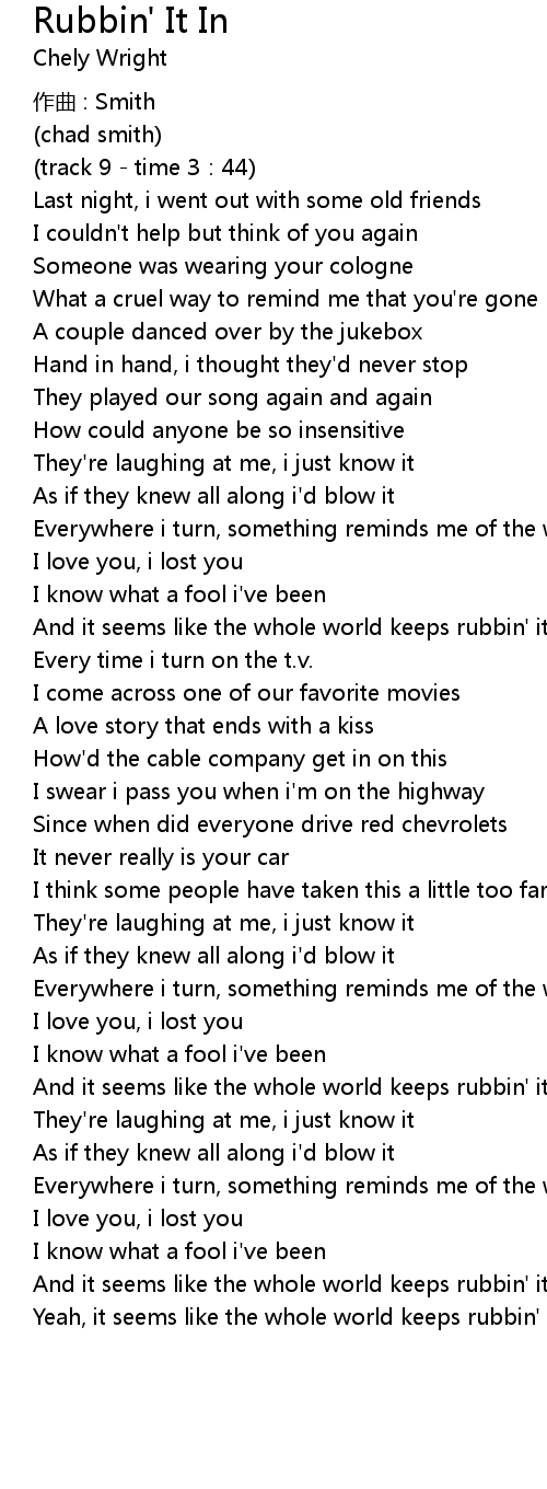 | Yeah, it seems like the whole world keeps rubbin' it |