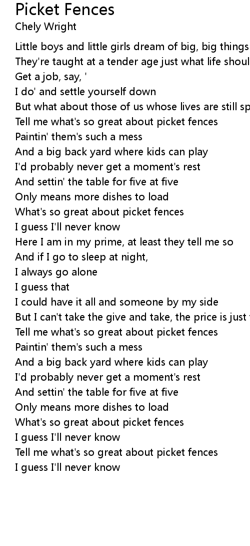Tell me what's so great about picket fences |