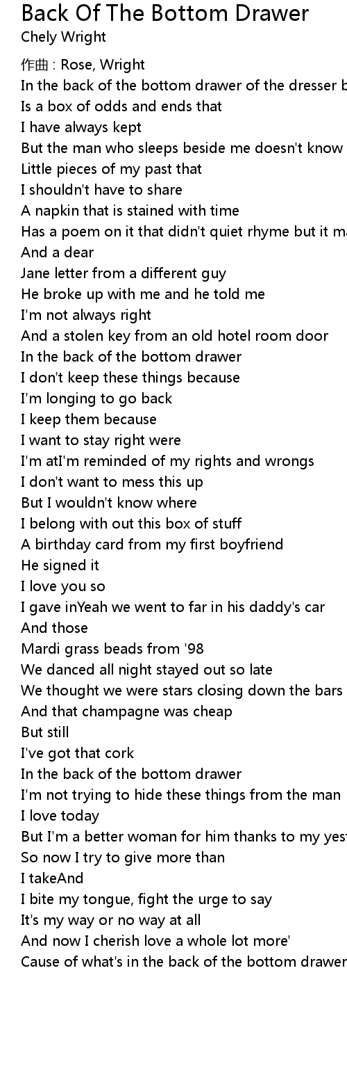 | 歌曲 | Back Of The Bottom Drawer |