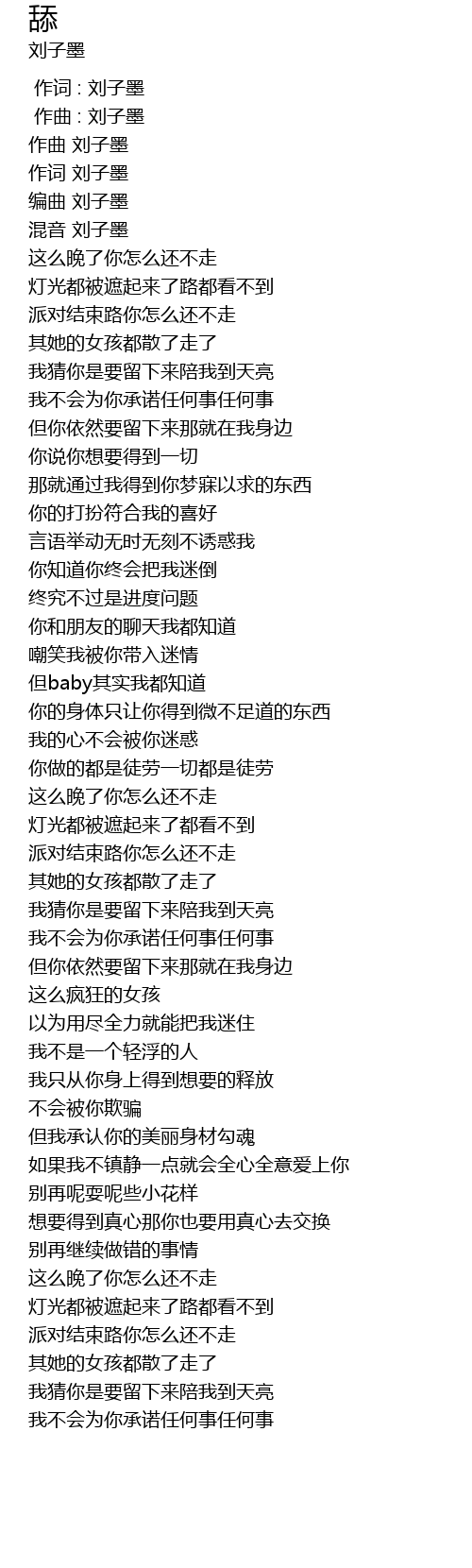 | [02:28.883] | 这么晚了你怎么还不走 |