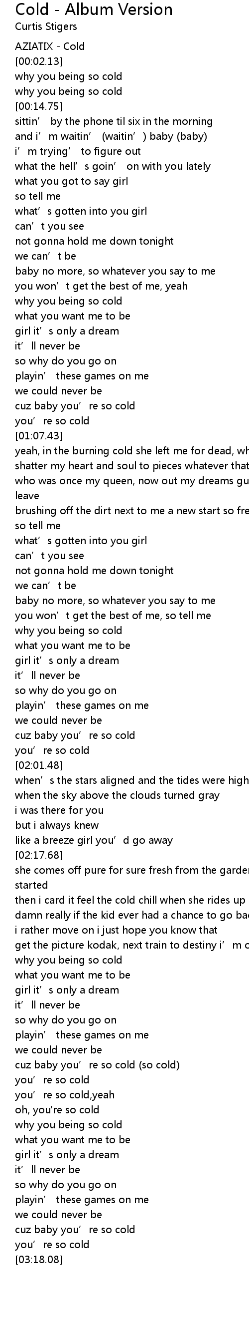 | [00:46.10] | why you being so cold |