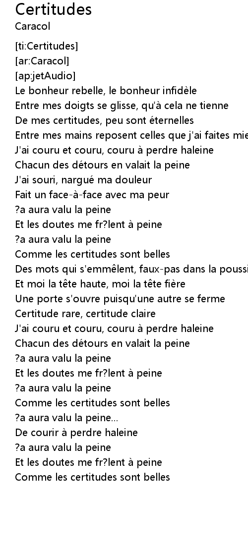 Certitudes 歌词