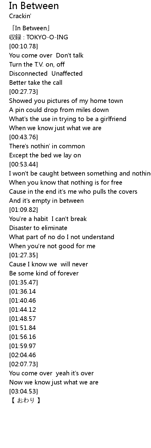 | [00:01.78] | 「In Between」 |