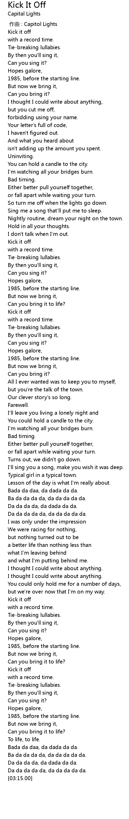 | [00:00.00] | zuò qǔ : Capitol Lights |